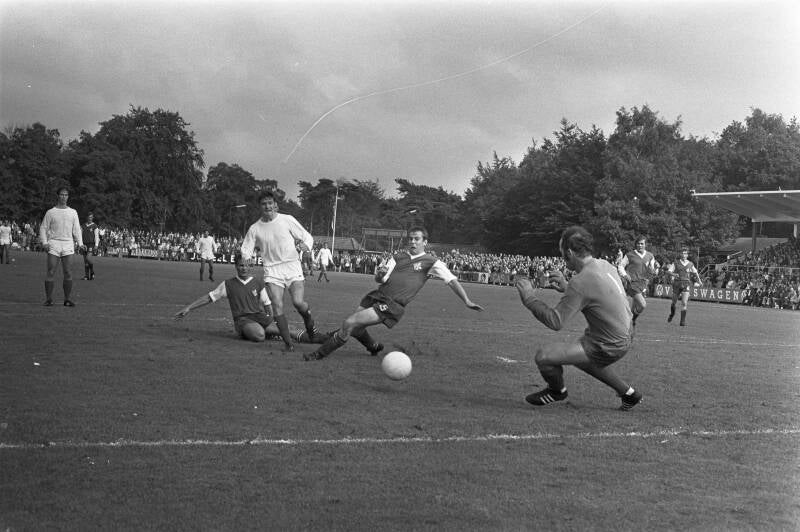 Voetbal. HVC tegen Ajax 0-3. (HVC-keeper Brits wordt gepasseerd)