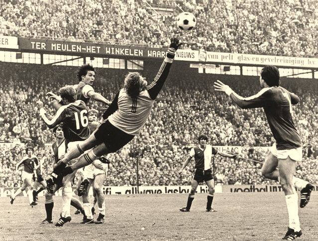 Voetbal. HVC tegen Ajax 0-6. Spelmoment met springende Michels