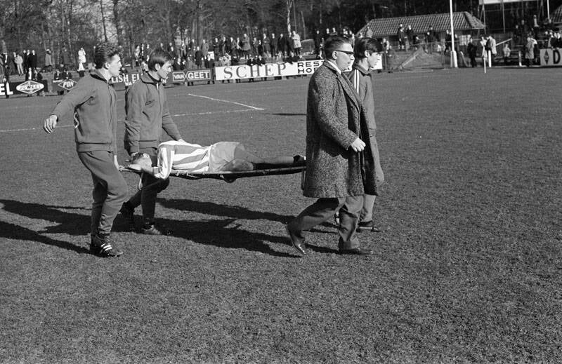 AMERSFOORT: Tijdens de voetbalwedstrijd HVC-Wageningen, zondagmiddag in het sportpark Birkhoven gespeeld, werd de Wageninger DILLISON zo geblesseerd dat hij met een brancard van het veld moest worden gedragen.